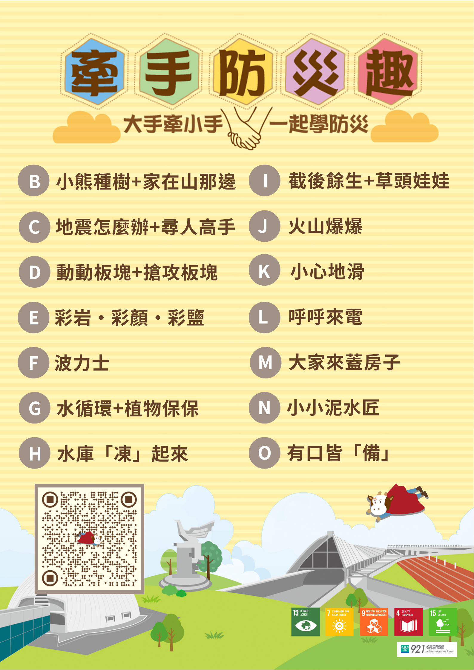二、園區致力於推廣地震科學、建築安全及防災教育,特別規 劃旨揭活動,透過套裝課程,帶領大家從多元主題來認識 地震與防災。